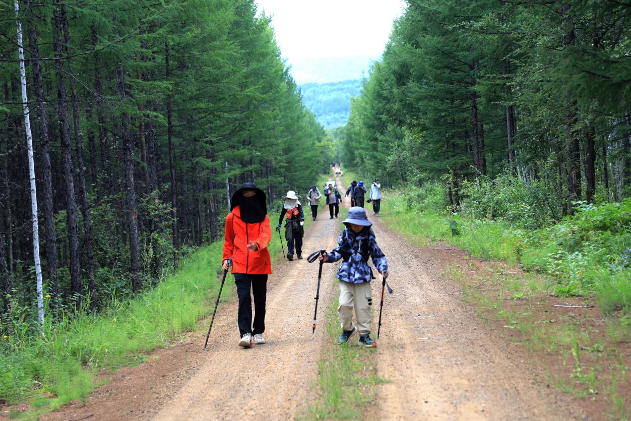 雷殿生“探索營”親子團成員徒步在阿木爾林業(yè)局1—21線(王力 攝)