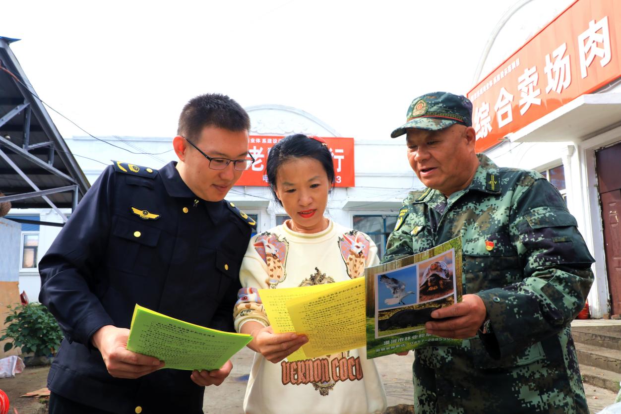活動中,林業(yè)局森林資源管理科聯(lián)合駐阿資源監(jiān)督辦、嶺峰國家級自然保護區(qū)管理局、阿木爾公安分局、阿木爾濕地公園管理局及阿木爾市場監(jiān)督管理局共同參與。為提升全社會愛鳥護鳥意識,工作人員在中華路設立宣傳臺、懸掛宣傳條幅,向過往居民、經(jīng)營業(yè)戶詳細講解網(wǎng)鳥、套鳥、毒鳥以及撿拾鳥蛋、毀壞鳥窩等行為的違法性,并明確依據(jù)《森林法》《野生動植物保護法》等法律法規(guī),此類行為將承擔相應的法律制裁責任。同時,通過散發(fā)宣傳單,向居民普及保護鳥類的科學知識、法律知識及重大意義,動員居民積極參與到鳥類重要繁殖地、越冬地、遷飛停歇地等重點區(qū)域的保護工作中,營造全局參與、人人有責的良好氛圍。