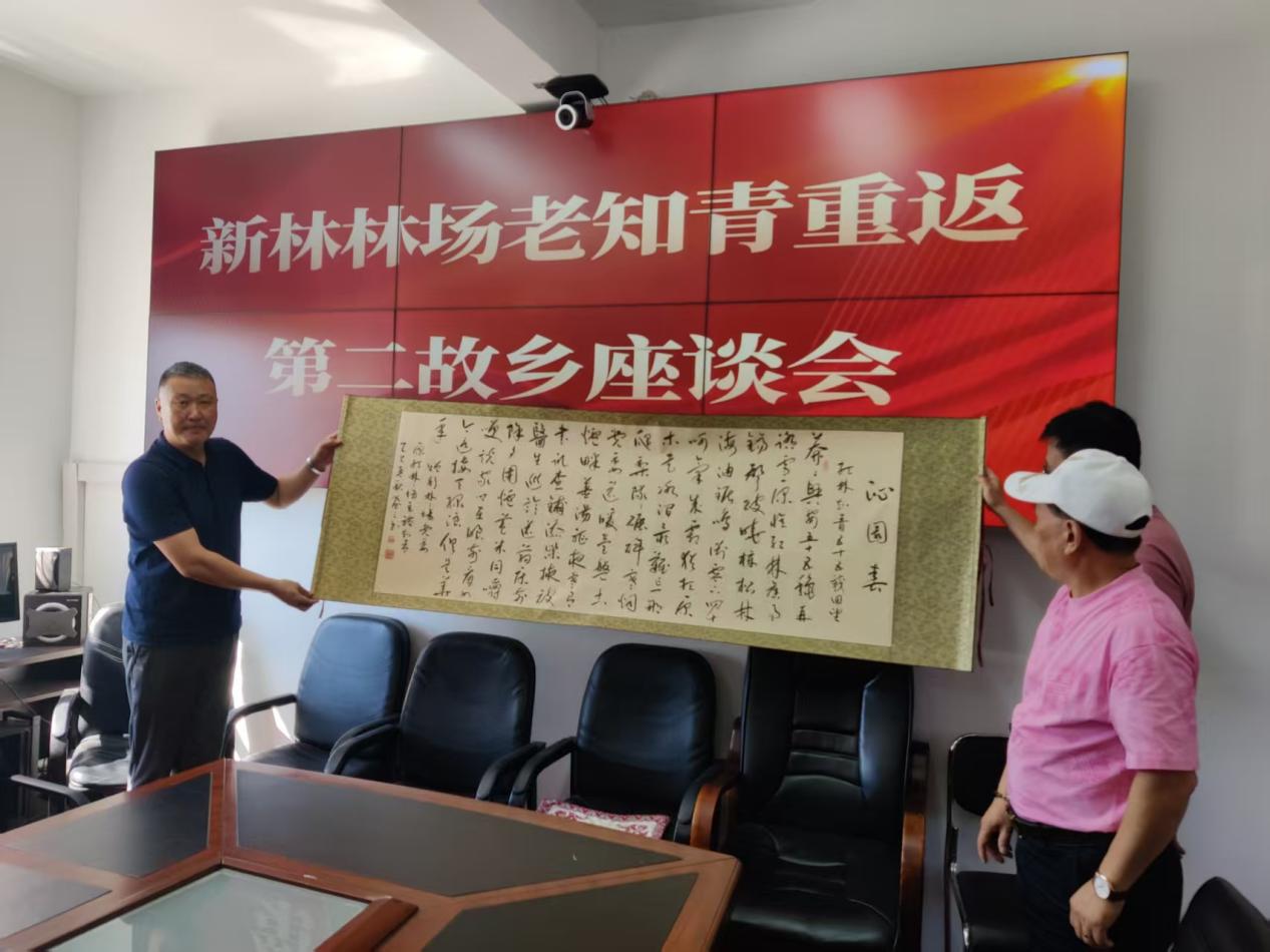 老知青贈送新林林場裝裱字畫(郭仁峰 攝)