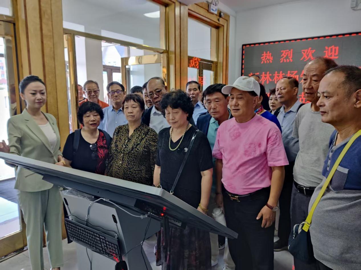 新林林場講解員給老知青們介紹多媒體觸控一體機(jī)的功能和作用(郭仁峰 攝)