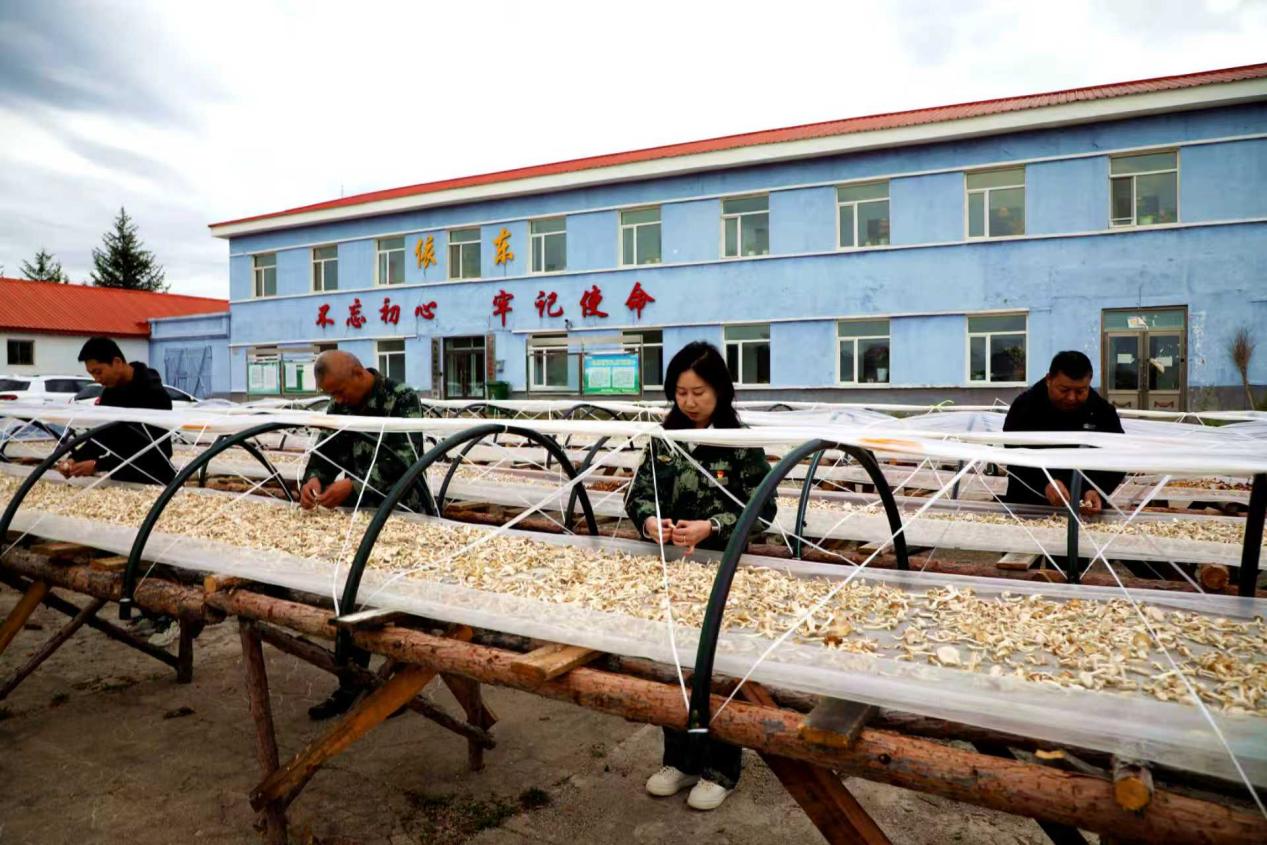 阿木爾林業(yè)局依東林場職工精心管理晾曬的毛尖蘑(王力 攝)