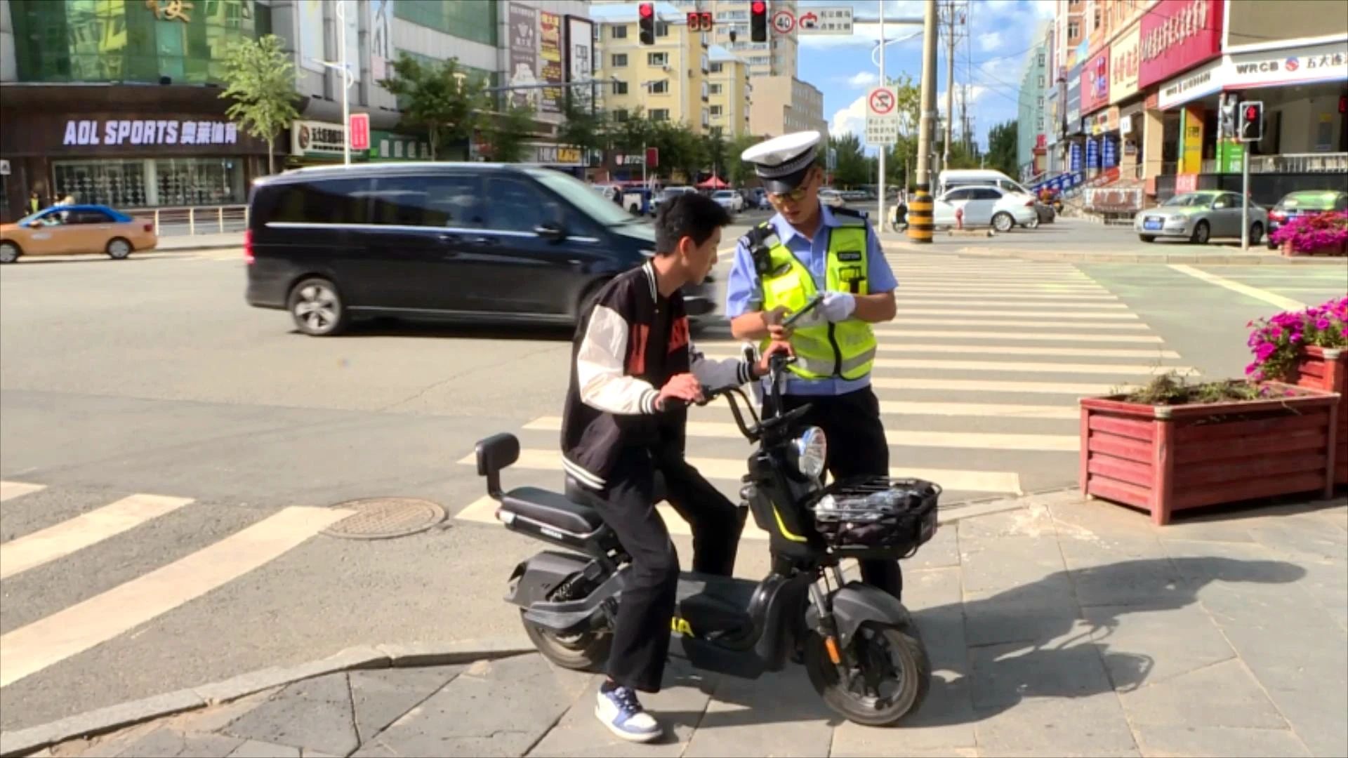 在城區(qū)主次干道執(zhí)法崗點(diǎn),民警對(duì)電動(dòng)車駕乘人員未按規(guī)定佩戴安全頭盔、小轎車不禮讓行人等行為逐一查處。執(zhí)法中,民警通過(guò)現(xiàn)場(chǎng)播放真實(shí)事故案例視頻,讓違法當(dāng)事人直觀感受交通違法的潛在危險(xiǎn)。