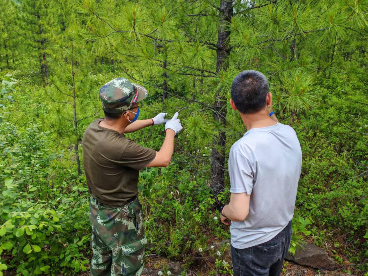林業(yè)局技術(shù)人員在進(jìn)行蟲害調(diào)查(王微 攝)