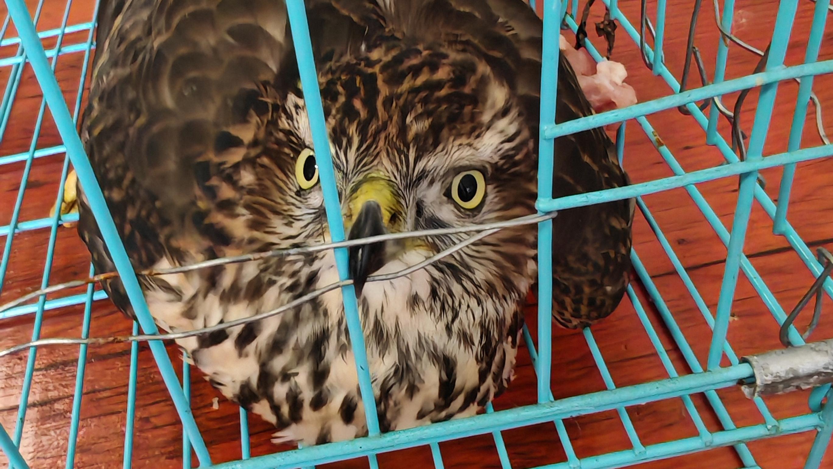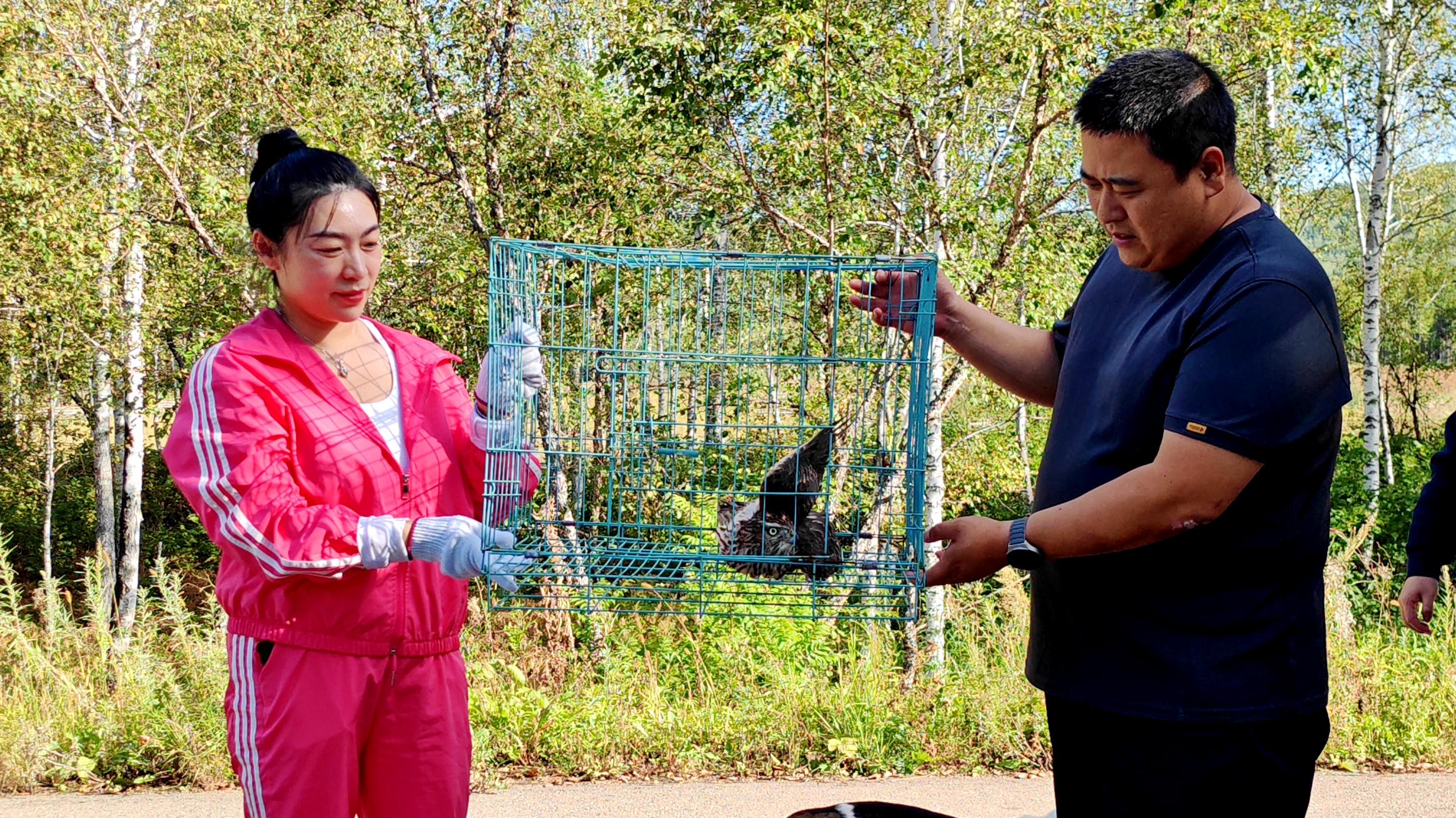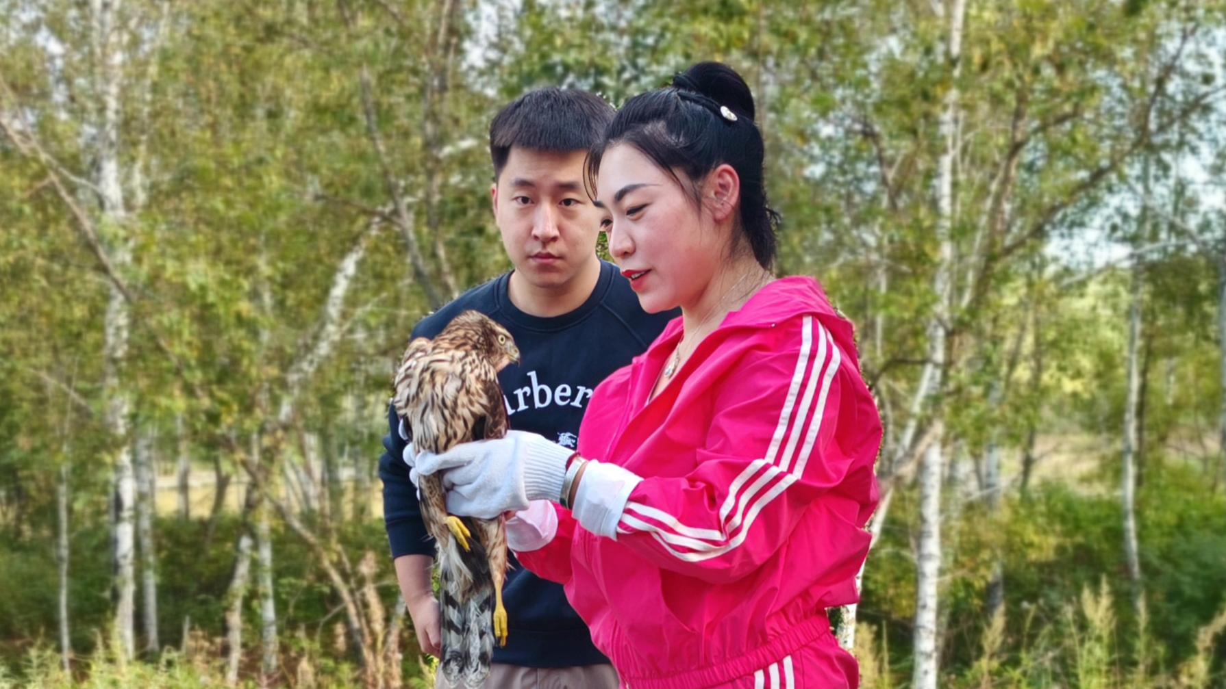 加格達(dá)奇林業(yè)局百泉谷景區(qū)工作人員將鷹隼移交到松林林業(yè)和草原局進(jìn)行康復(fù)救助(趙子敬 攝)