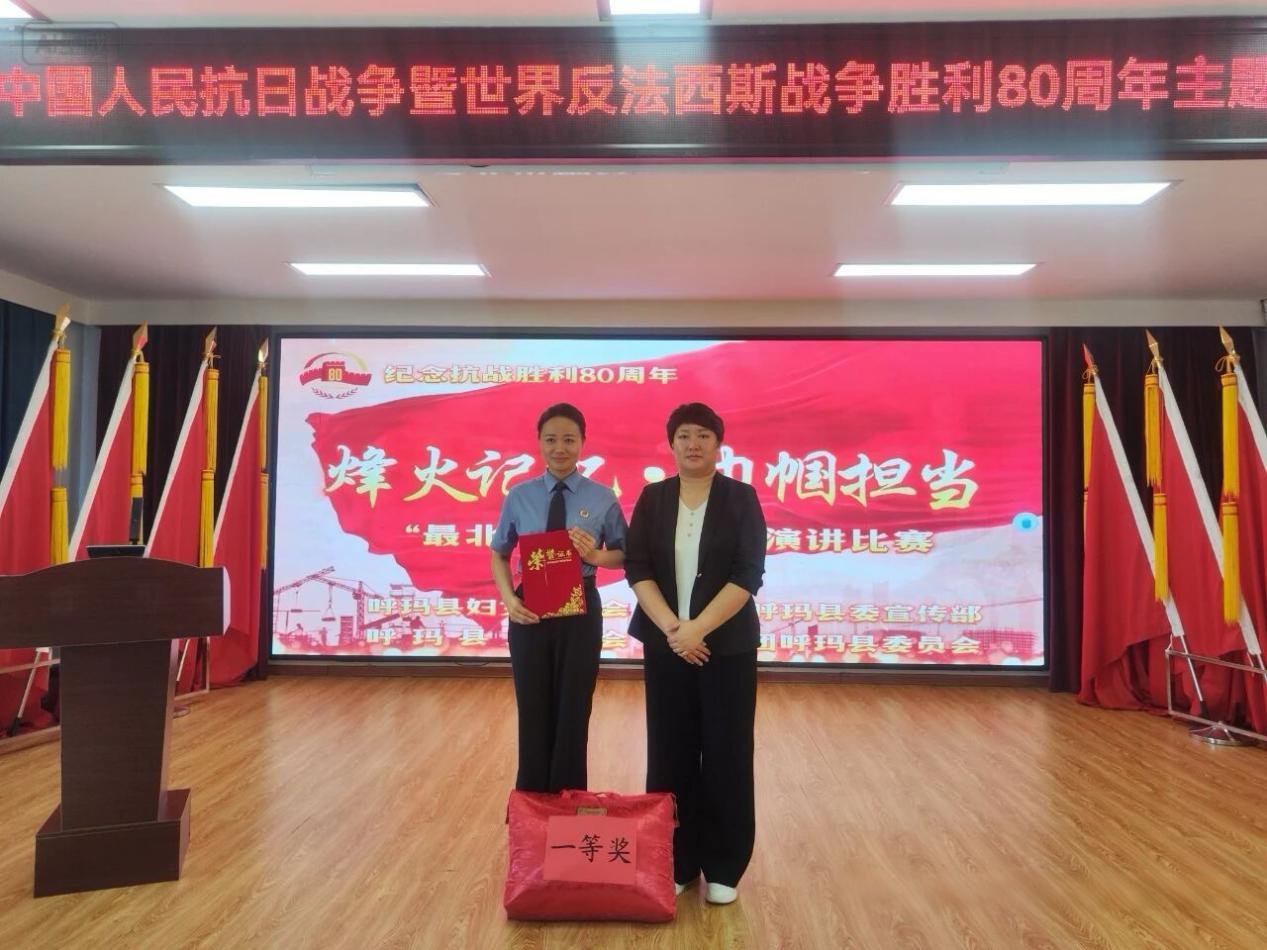 黑龍江經(jīng)濟(jì)網(wǎng)訊(竇英杰 記者馬朝林)為紀(jì)念中國人民抗日戰(zhàn)爭暨世界反法西斯戰(zhàn)爭勝利80周年,9月5日,呼瑪縣舉辦“烽火記憶·巾幗擔(dān)當(dāng)——最北巾幗紅”主題演講比賽。呼瑪縣人民檢察院干警積極投身主題演講比賽,以飽滿的熱情、激昂的語言,講述著那段波瀾壯闊的歷史。