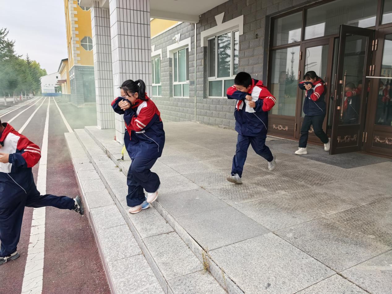 學(xué)生們?cè)诶蠋煹囊龑?dǎo)下,有序開(kāi)展消防安全疏散演練(杜江 攝)
