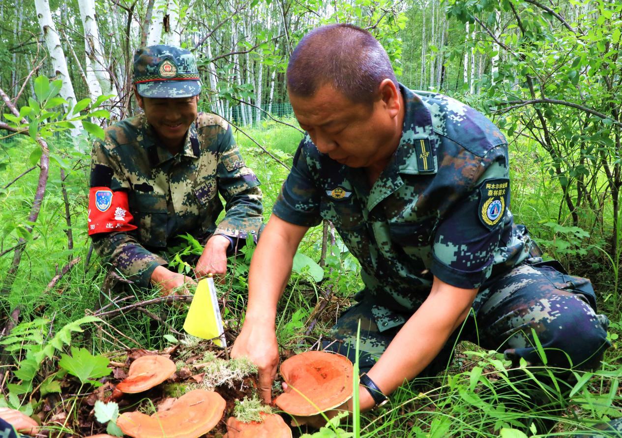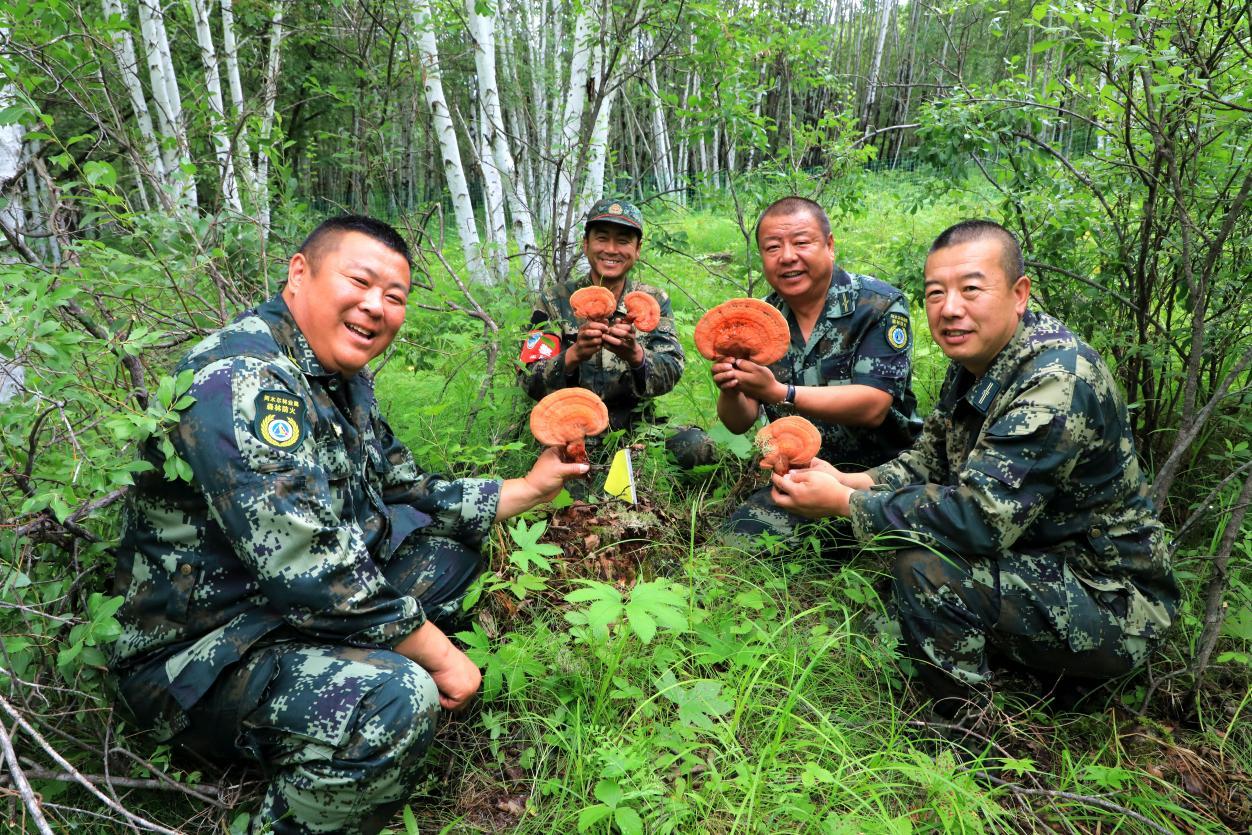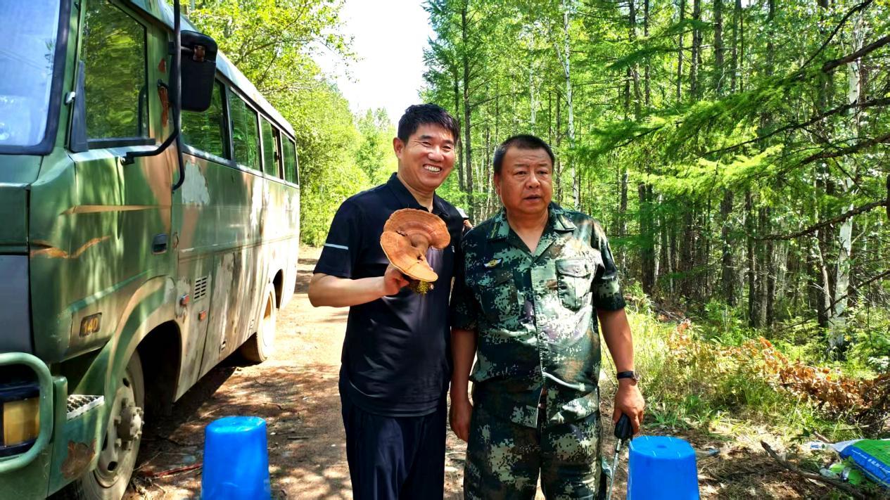 阿木爾林業(yè)局依西林場場級林長、副林長查看野生靈芝豐收情況(王力 攝)
