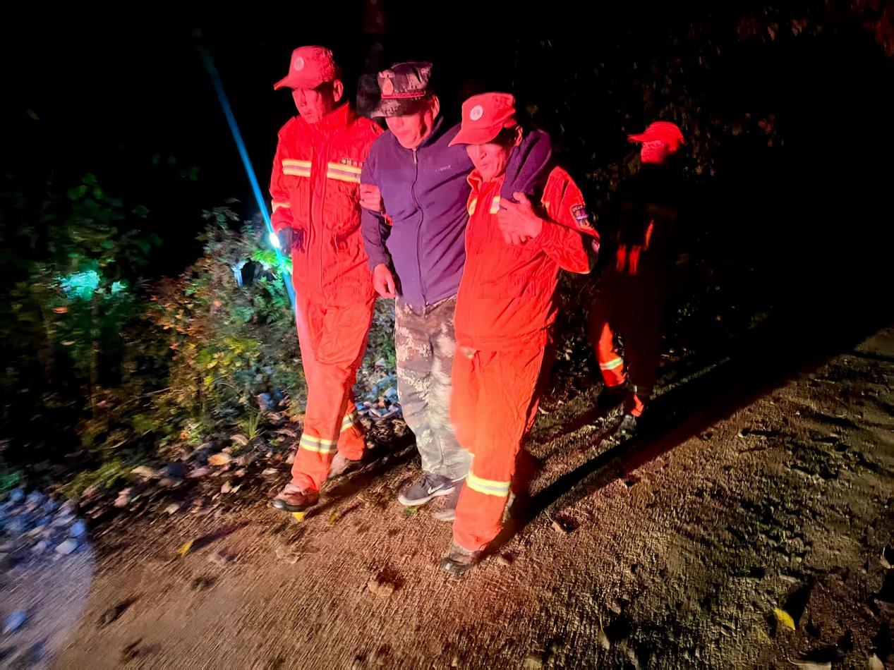 “張師傅!聽到請回應(yīng)!”的呼喊聲在山林暴雨中回蕩,顯得格外急促。經(jīng)不懈努力,當(dāng)晚21時(shí)30分,救援隊(duì)員在雨中聽到了已出現(xiàn)失溫癥狀的張師傅的微弱回應(yīng),并迅速成功施救,為他提供熱水、食物和衣物,待其逐漸恢復(fù)體力后安全護(hù)送下山。