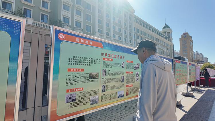 警報(bào)鳴響結(jié)束后,黑龍江省國(guó)動(dòng)辦組織開展了豐富的國(guó)防教育宣傳工作。主會(huì)場(chǎng)設(shè)置了32塊宣傳展板,圖文并茂,生動(dòng)展示了中國(guó)人民艱苦卓絕的抗戰(zhàn)歷程,以及世界反法西斯戰(zhàn)爭(zhēng)勝利的輝煌時(shí)刻,全面介紹了國(guó)防動(dòng)員的重大意義、人民防空基本知識(shí)以及黑龍江省在國(guó)防動(dòng)員建設(shè)方面取得的顯著成就,吸引了眾多市民駐足觀看。