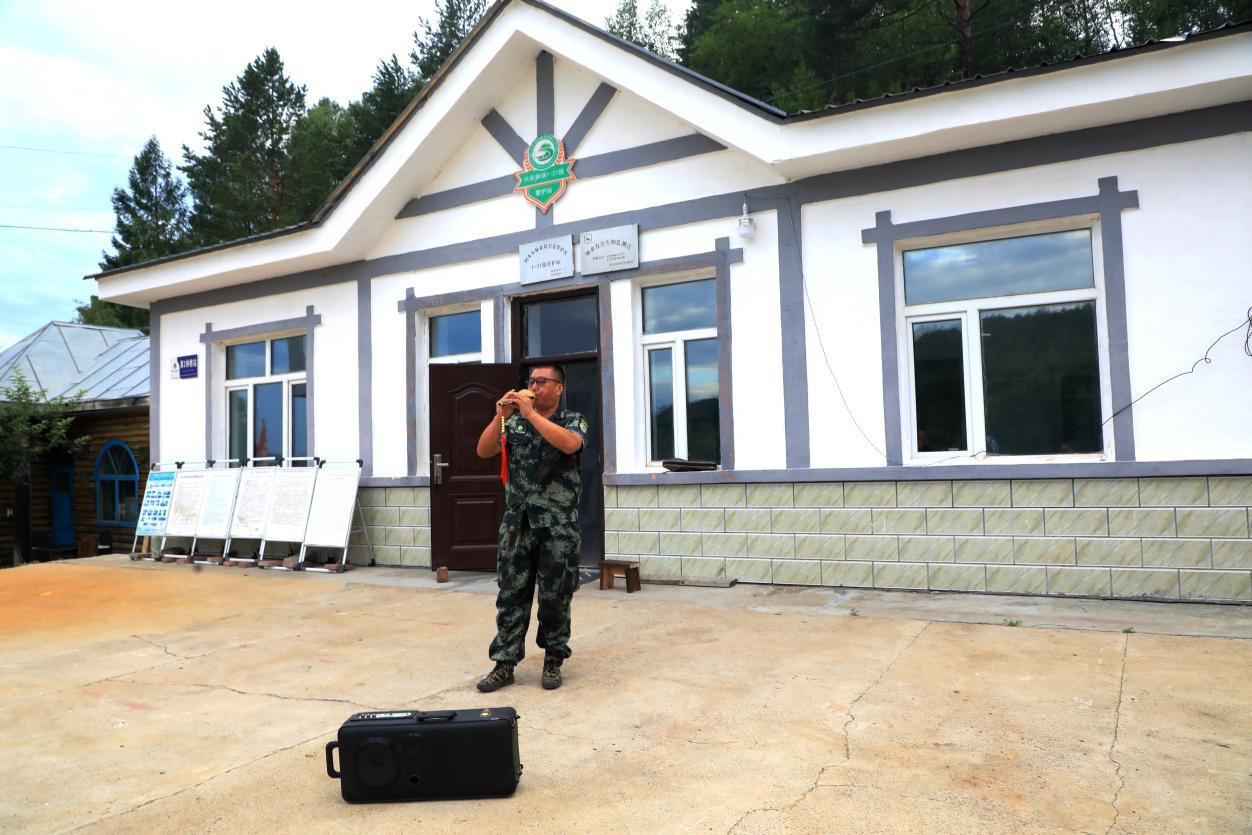 管護(hù)員李瑞閑暇之余吹起樂器,享受幸福時光(王力 攝)