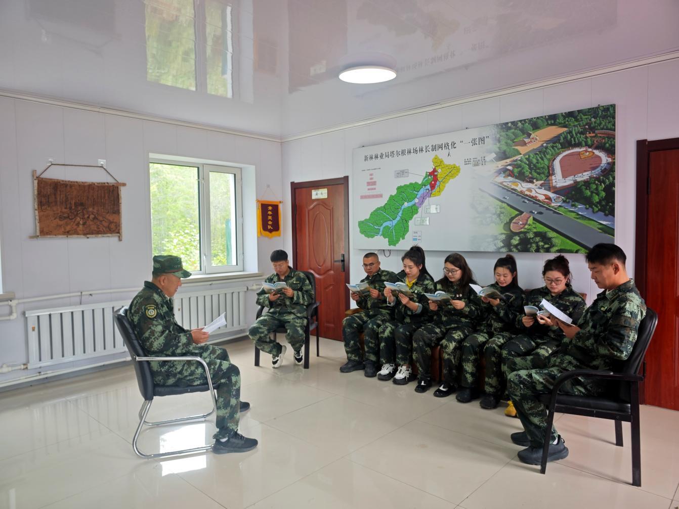 林場(chǎng)職工在管護(hù)站“讀書(shū)角”進(jìn)行理論學(xué)習(xí)(蒿夢(mèng)琪 攝)